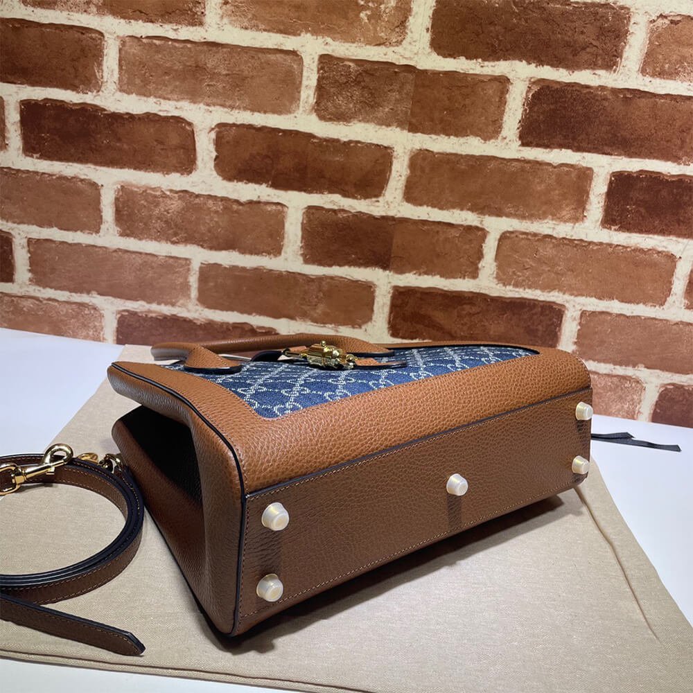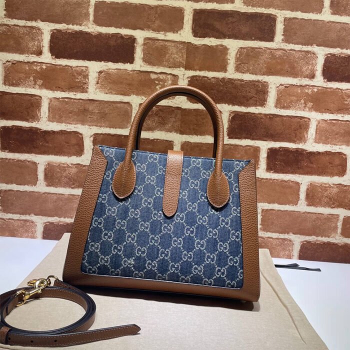 Dark blue and ivory eco washed organic GG jacquard denim